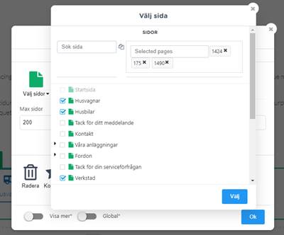 - Tryck på Välj sidor -knappen och välj de sidor du vill länka till och tryck Välj